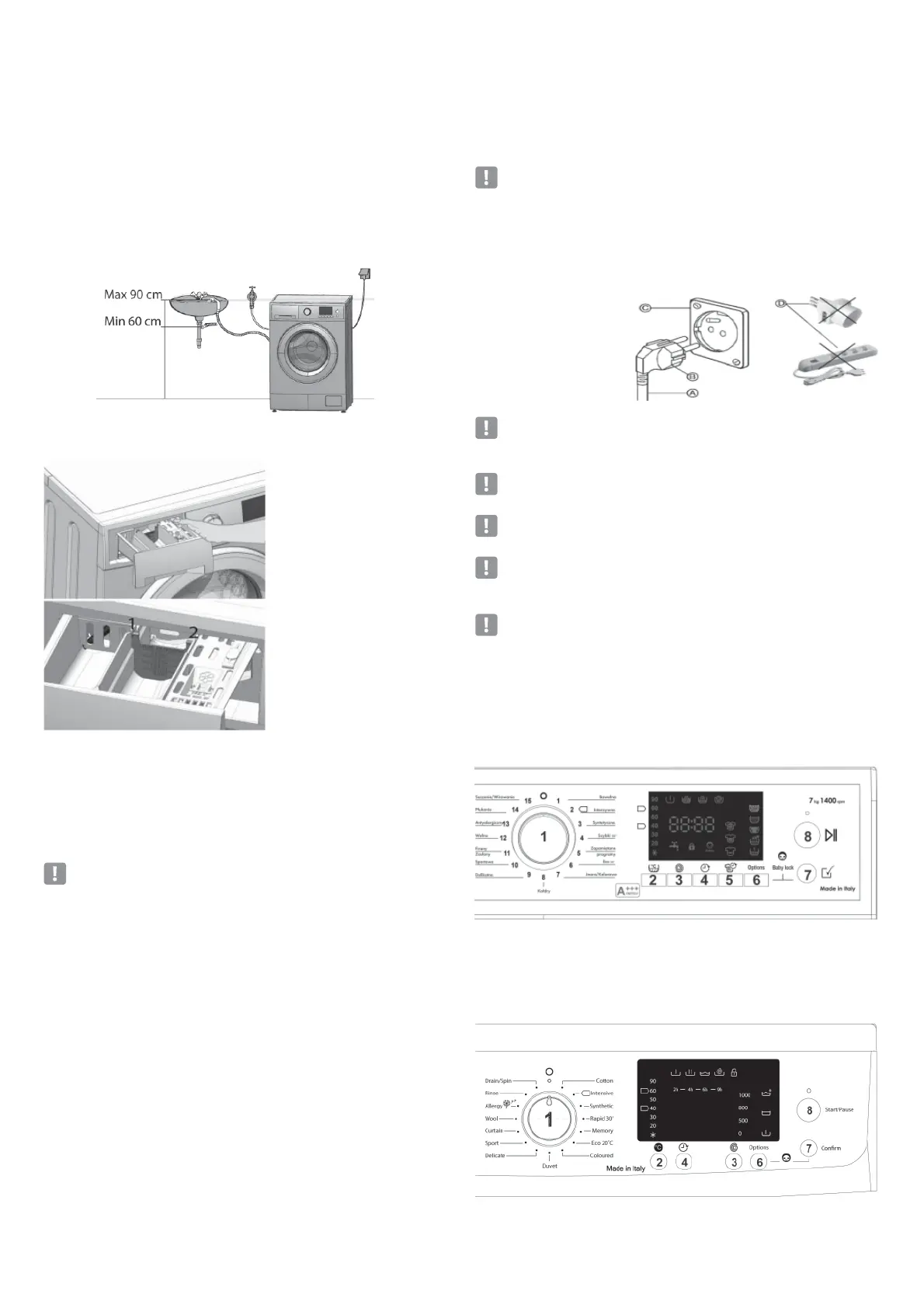 Зливний шланг повинен знаходитися на висоті від 60 см до 90 см від підлоги.