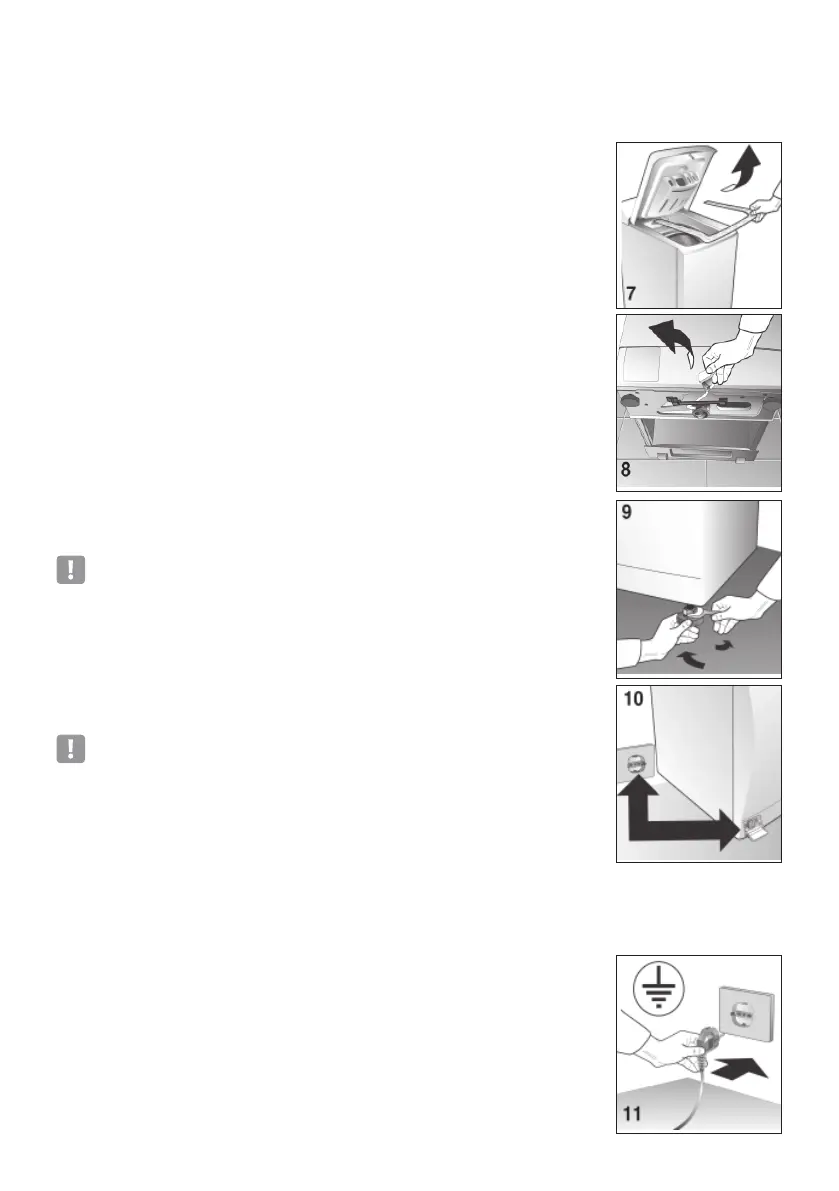 Выбрав место для стиральной машины, выровняйте ее с помощью регулируе- мых