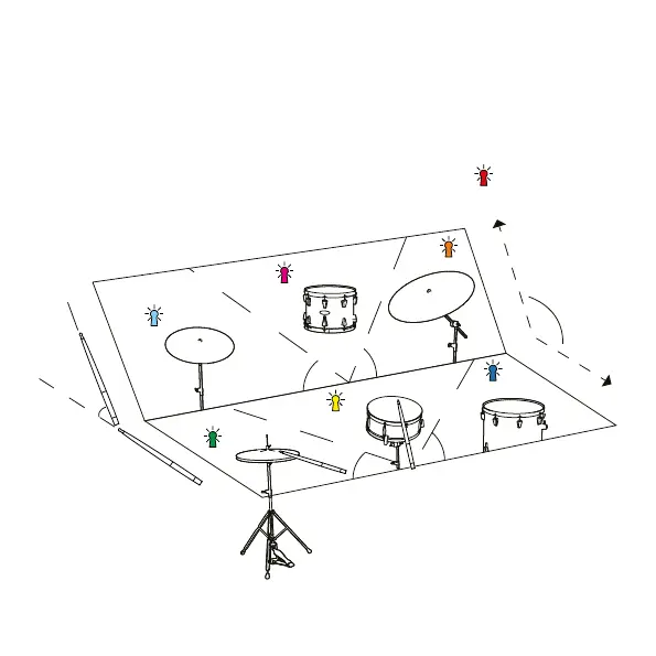 Red is the critical point. Do not strike in the red area, as your drumsticks are out of range there.