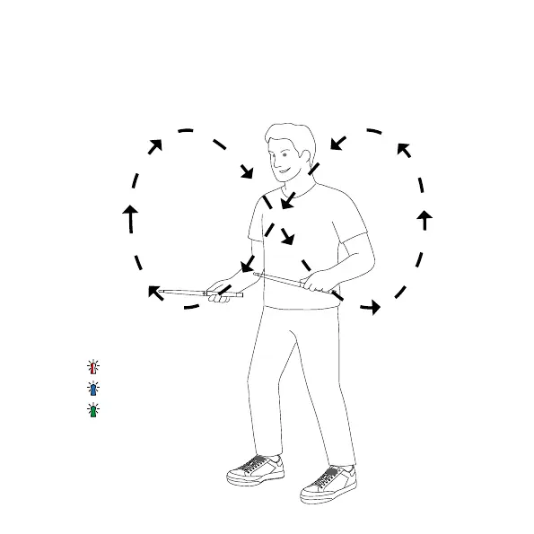 b. Hold the drumstick and draw lying figures "8" in the air. When the drumstick head is blinking