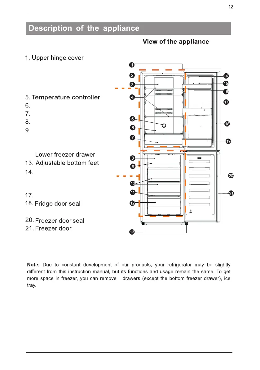Note: To get the best energy efficiency of this product, please place all shelves, drawers on their