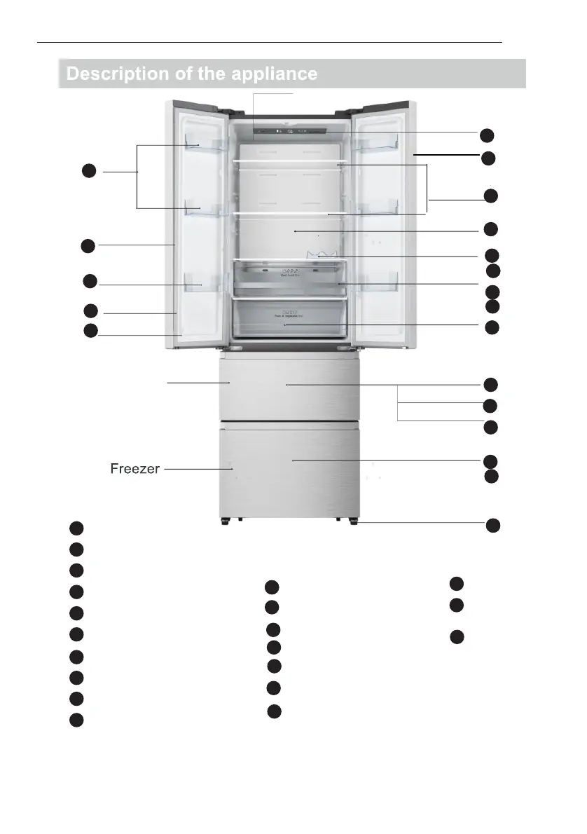 Note: To get the best energy efficiency of this product, please place all shelves, drawers on