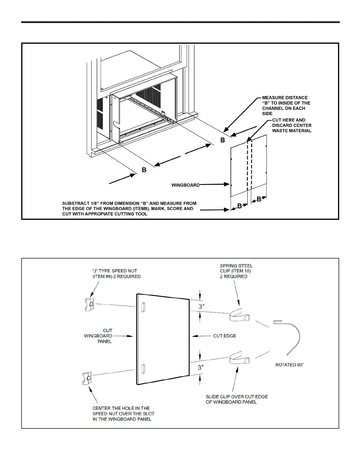 STEP 5 ASSEMBLE CLIPS TO WINGBOARD PANELS: Assemble “J” type speed nuts (Item #9) and spring steel clips (Item #10) to the