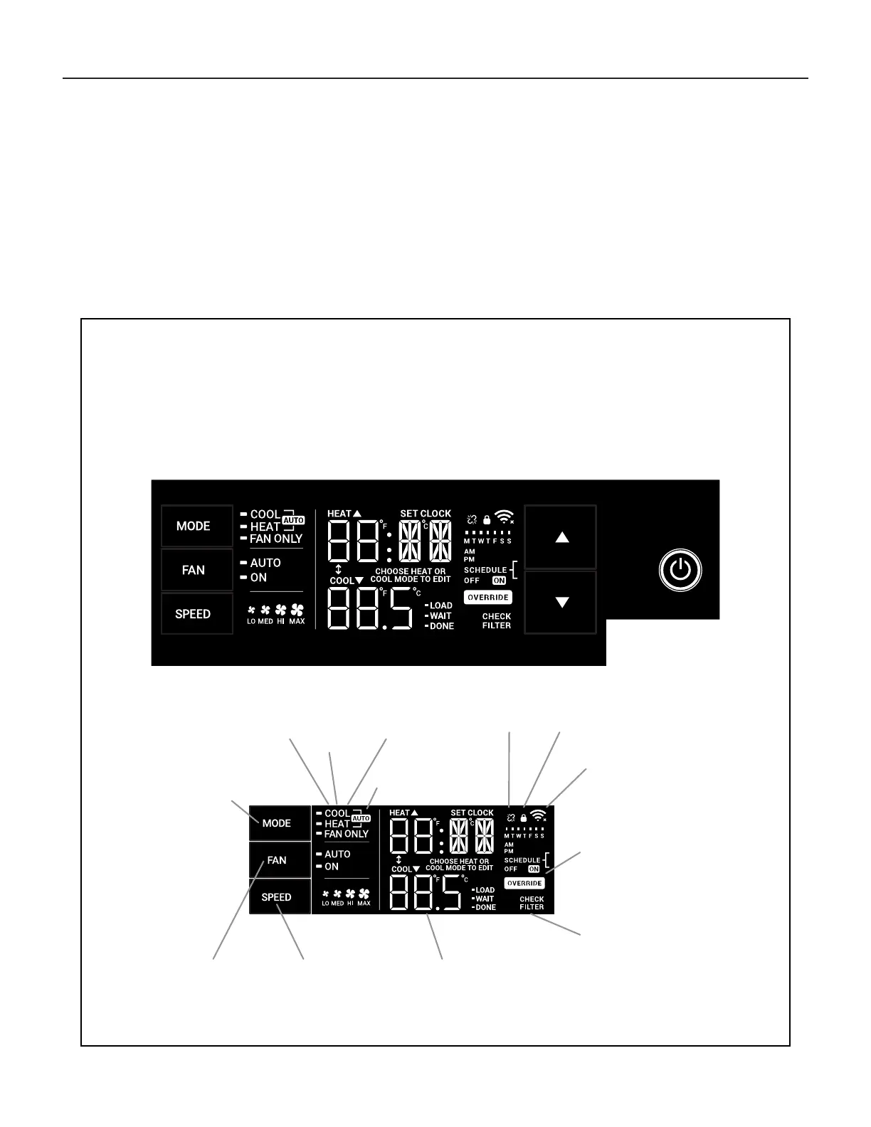 Encendido – Presione el botón para encender el aire acondicionado. El botón de encendido se ilumina para indicar que la unidad está encendida. La luz