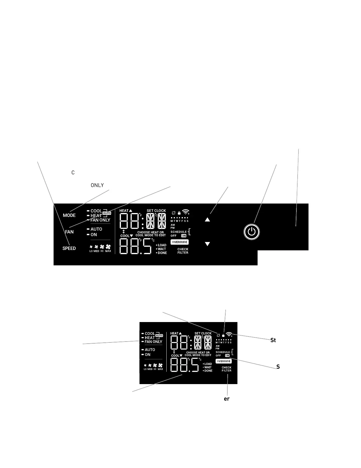 Power On – Press the button to turn on the air conditioner. The power button illuminates to indicate that the power is on. The backlight on the power