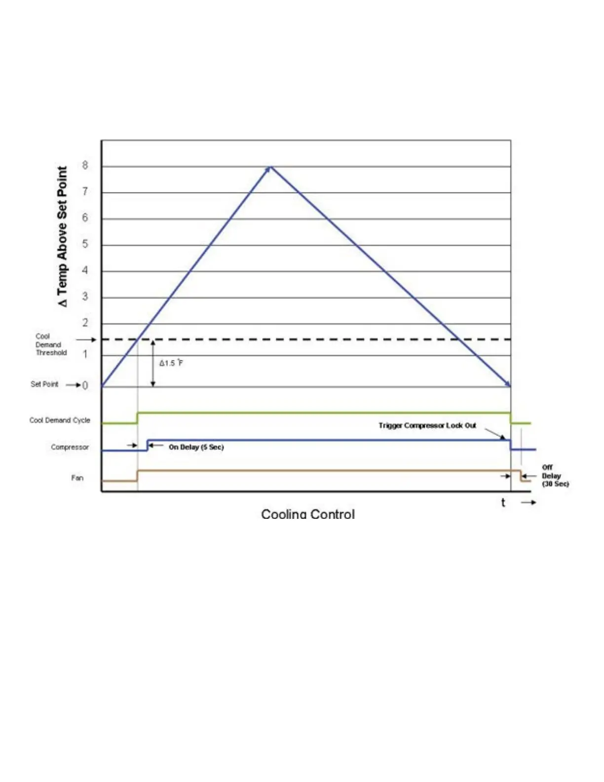 Once the indoor ambient temperature rises past the cool demand threshold (Cool Set Point + 1.5 ˚F) (see gure below), and the