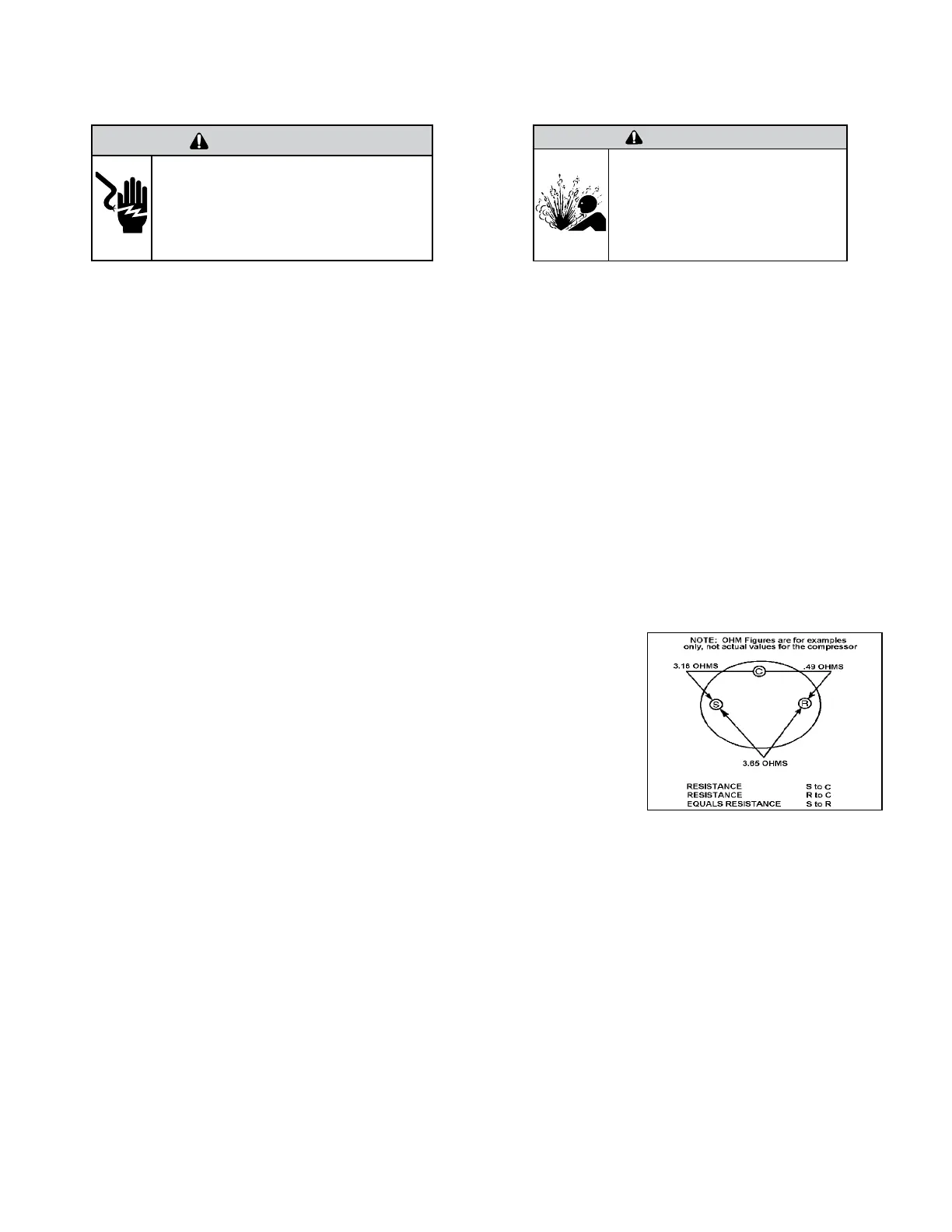 from the start to the common connections (“S” to “C”). The lowest resistance is from the run to common. (“C” to “R”) Before replacing a compressor,