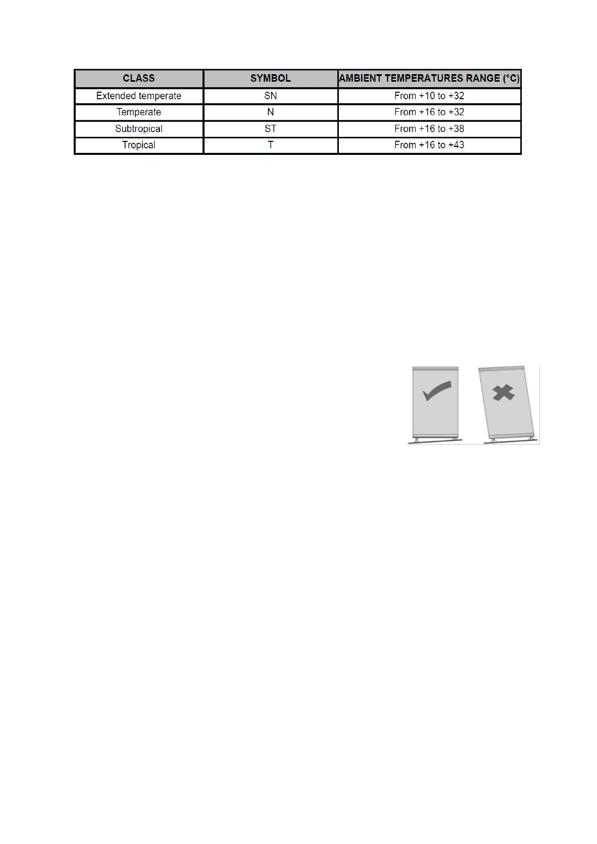 N-ST: This refrigeration appliance is intended for use at ambient temperatures between 16°C and