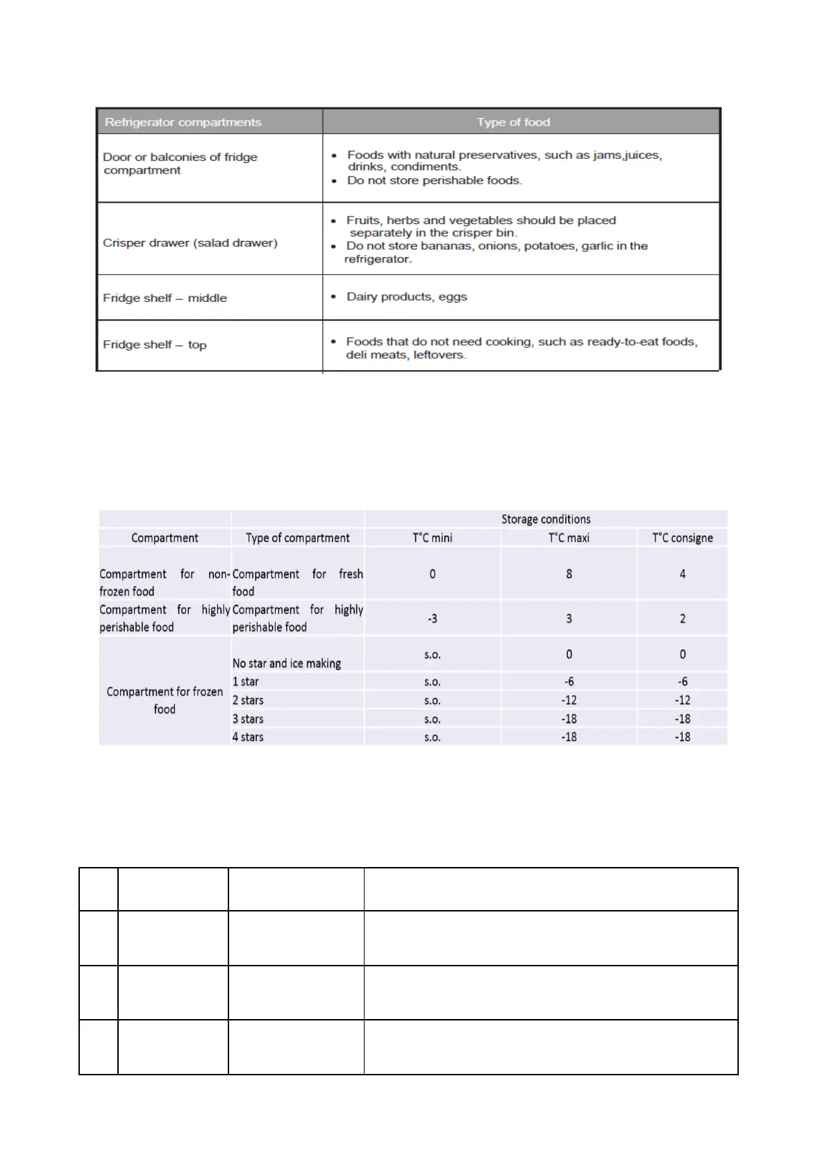 optimal preservation of foodstuffs, it is recommended to set the temperatures of the compartments