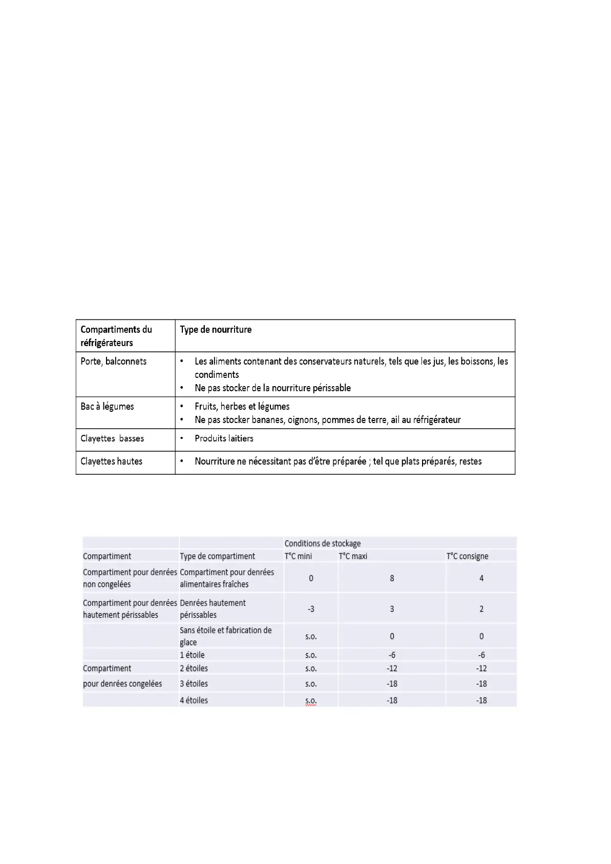Le stockage de denrées alimentaires doit obligatoirement respecter des températures de