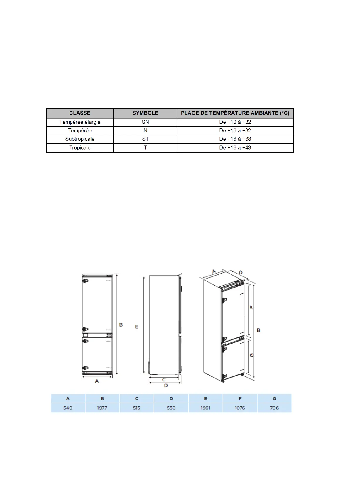 à respecter. Cette température est spécifique selon la classe climatique de l’appareil :