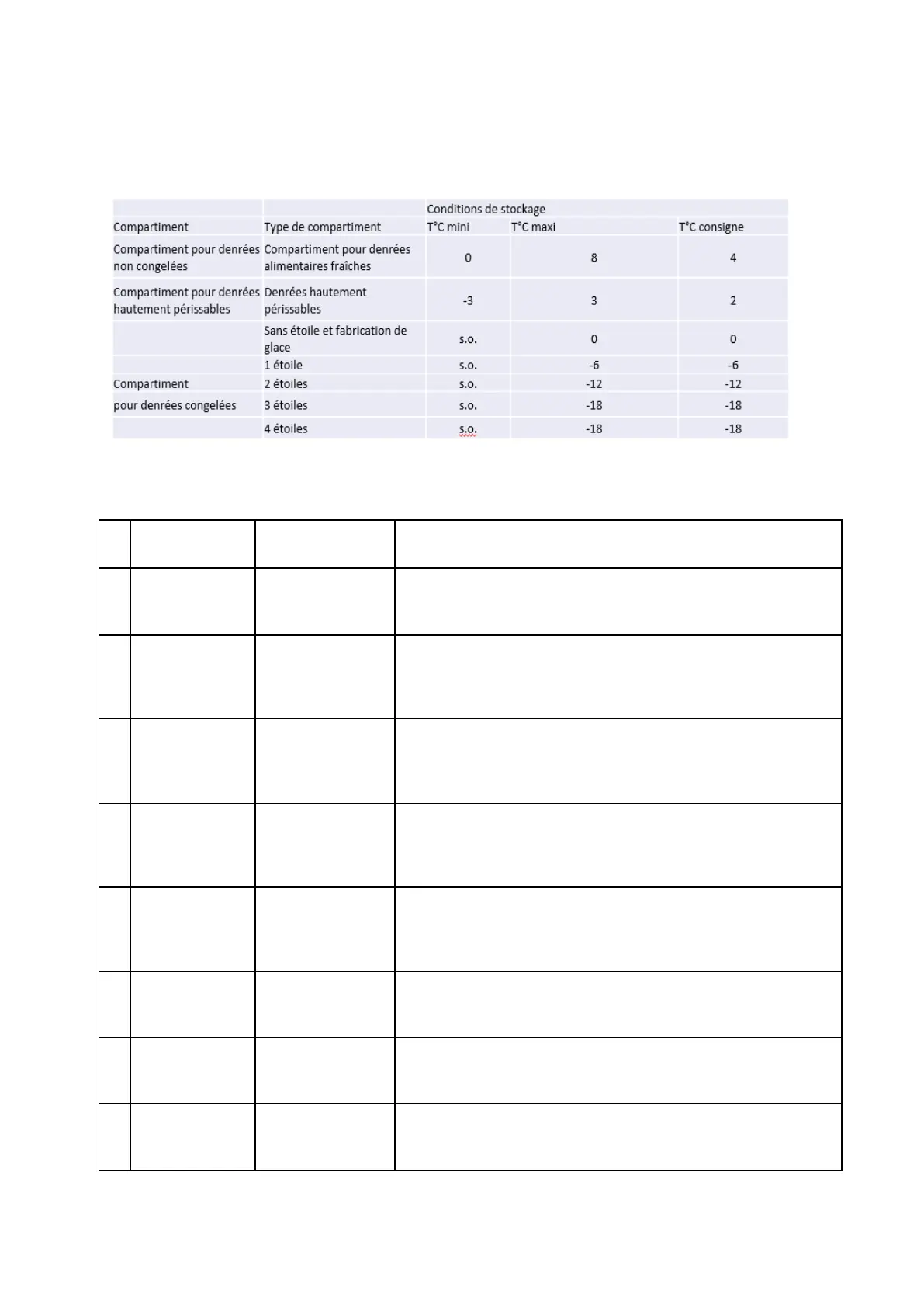 recommandé de régler les températures des compartiments comme ci-dessous :