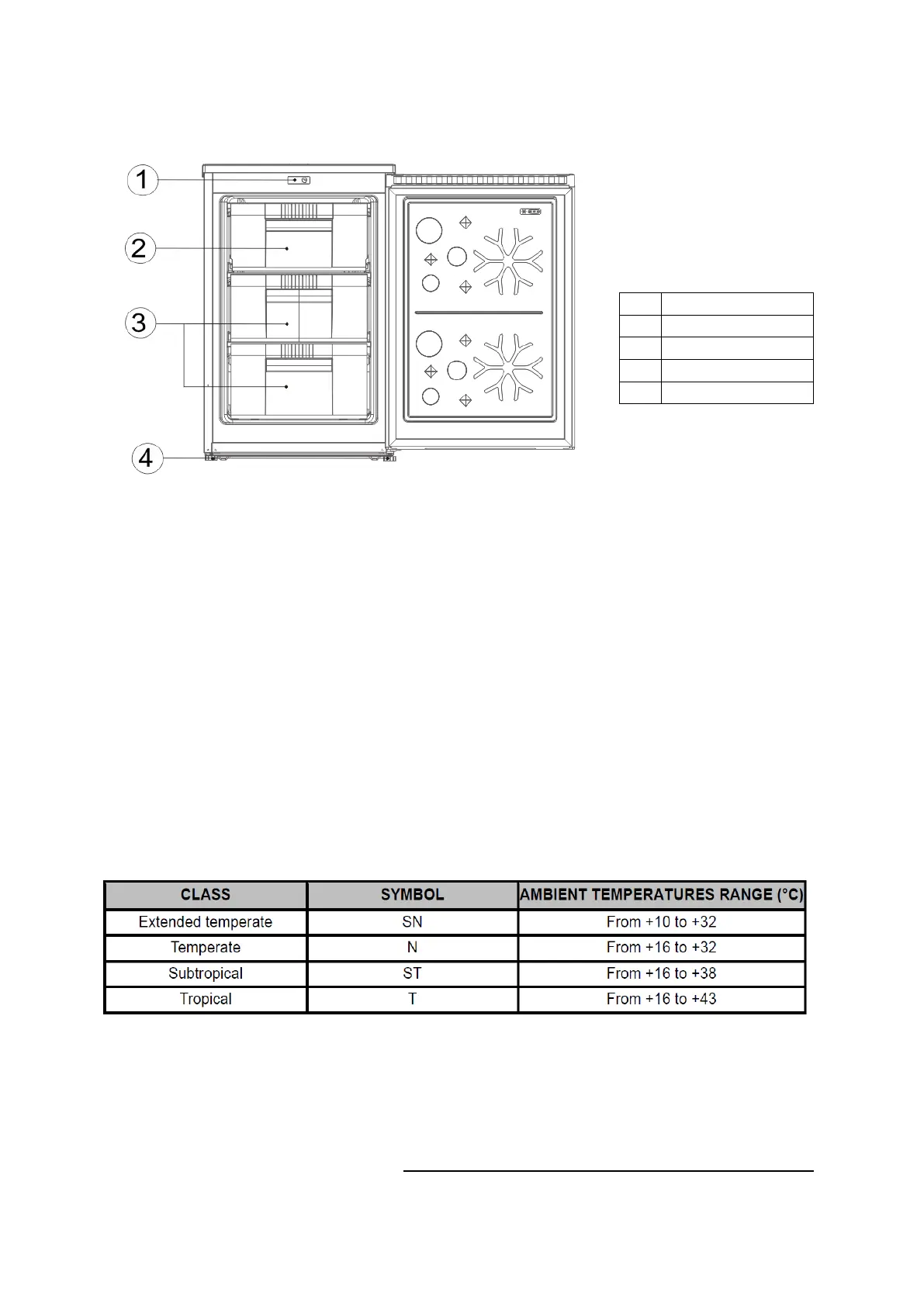 N-ST: This refrigerating appliance is intended to be used at ambient temperatures ranging from