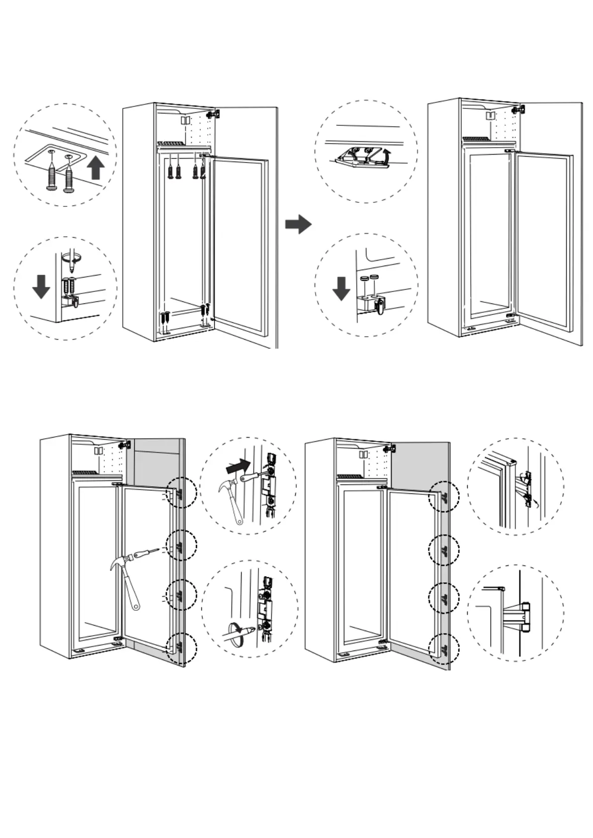 5. Ouvrez la porte de l'armoire à l'angle maximum et ouvrez la porte de l’appareil à la position
