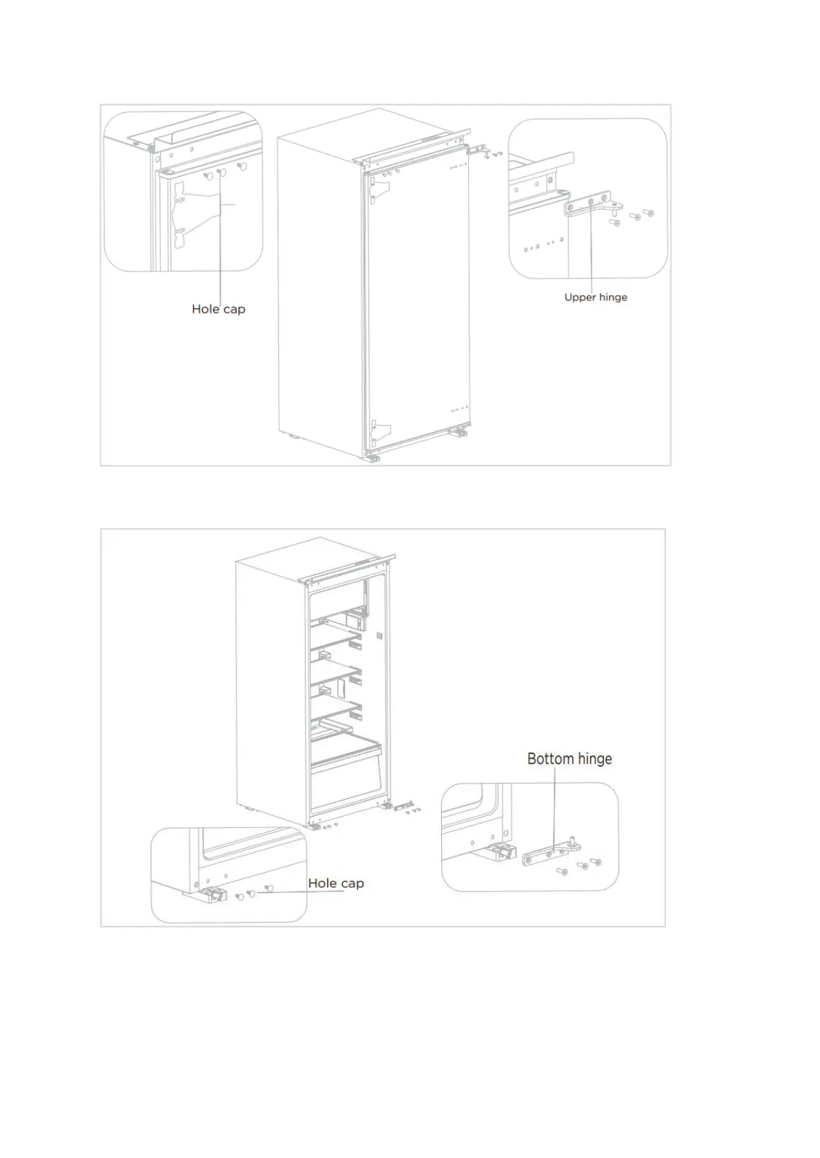 3. Remove the appliance door, bottom hinge, and the hole caps.
