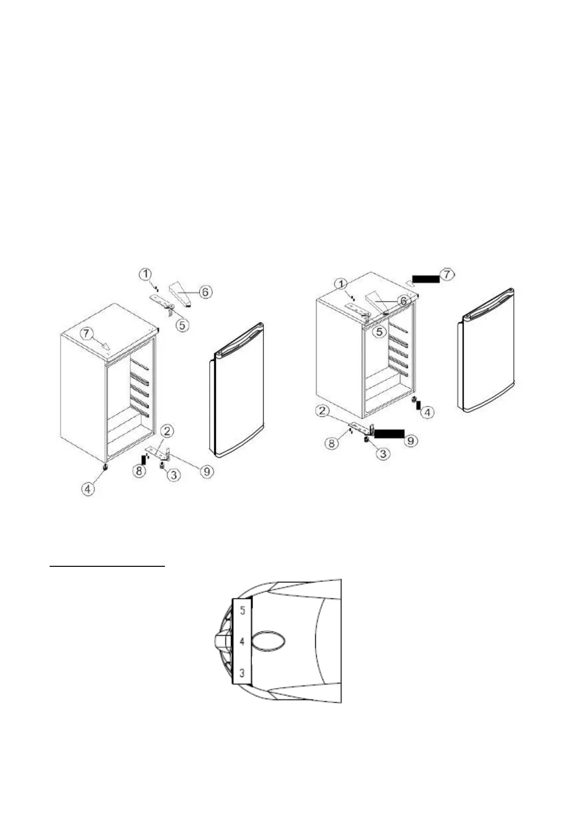 6. Before inserting the lower hinge (2) remove the plug (9) and reverse the direction of the