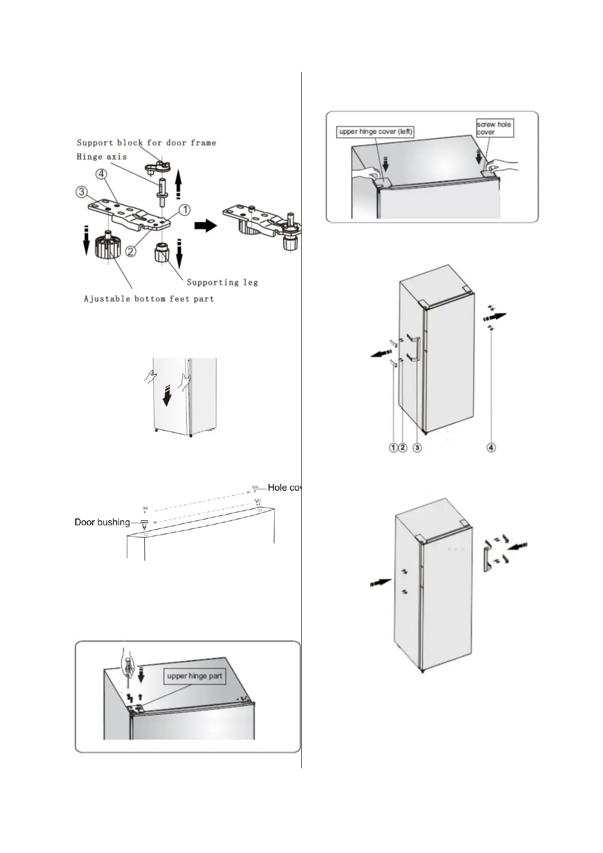 ① to ②, move adjustable bottom feet part