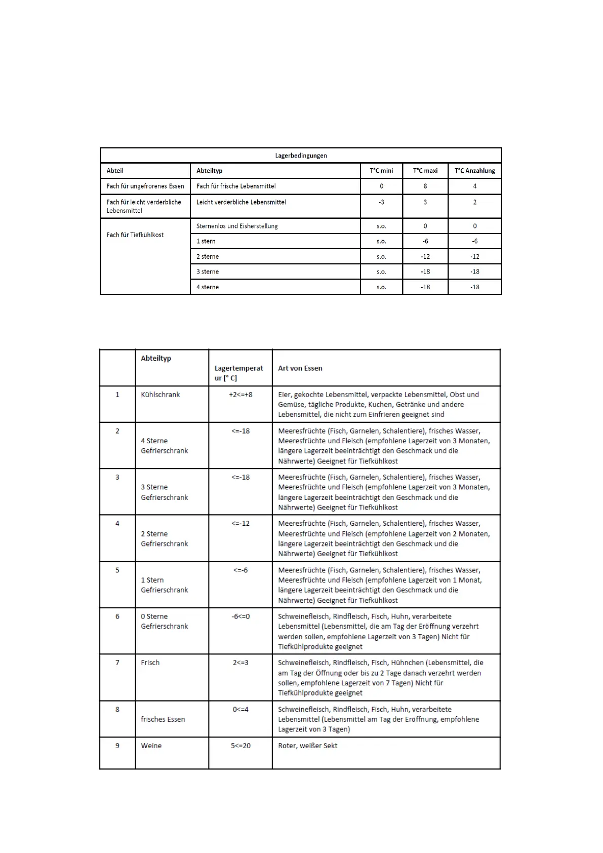 Unter der empfohlenen Einstellung beträgt die beste Haltbarkeit im Gefrierschrank nicht mehr