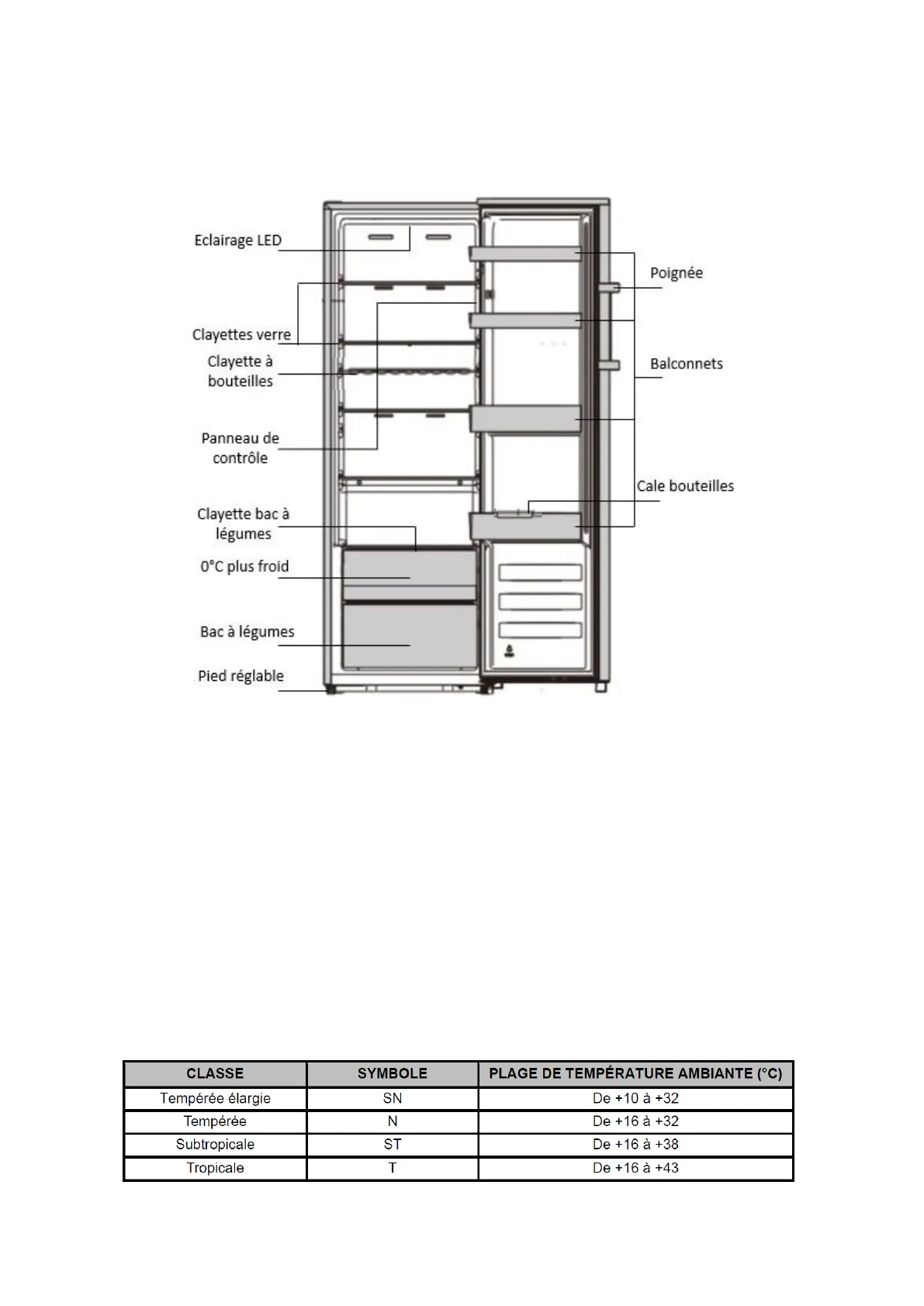est à respecter. Cette température est spécifique selon la classe climatique de l’appareil :