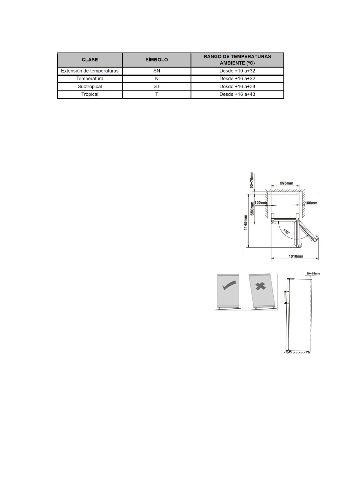SN: Este aparato de refrigeración está diseñado para usarse a temperaturas ambiente entre 10°C y