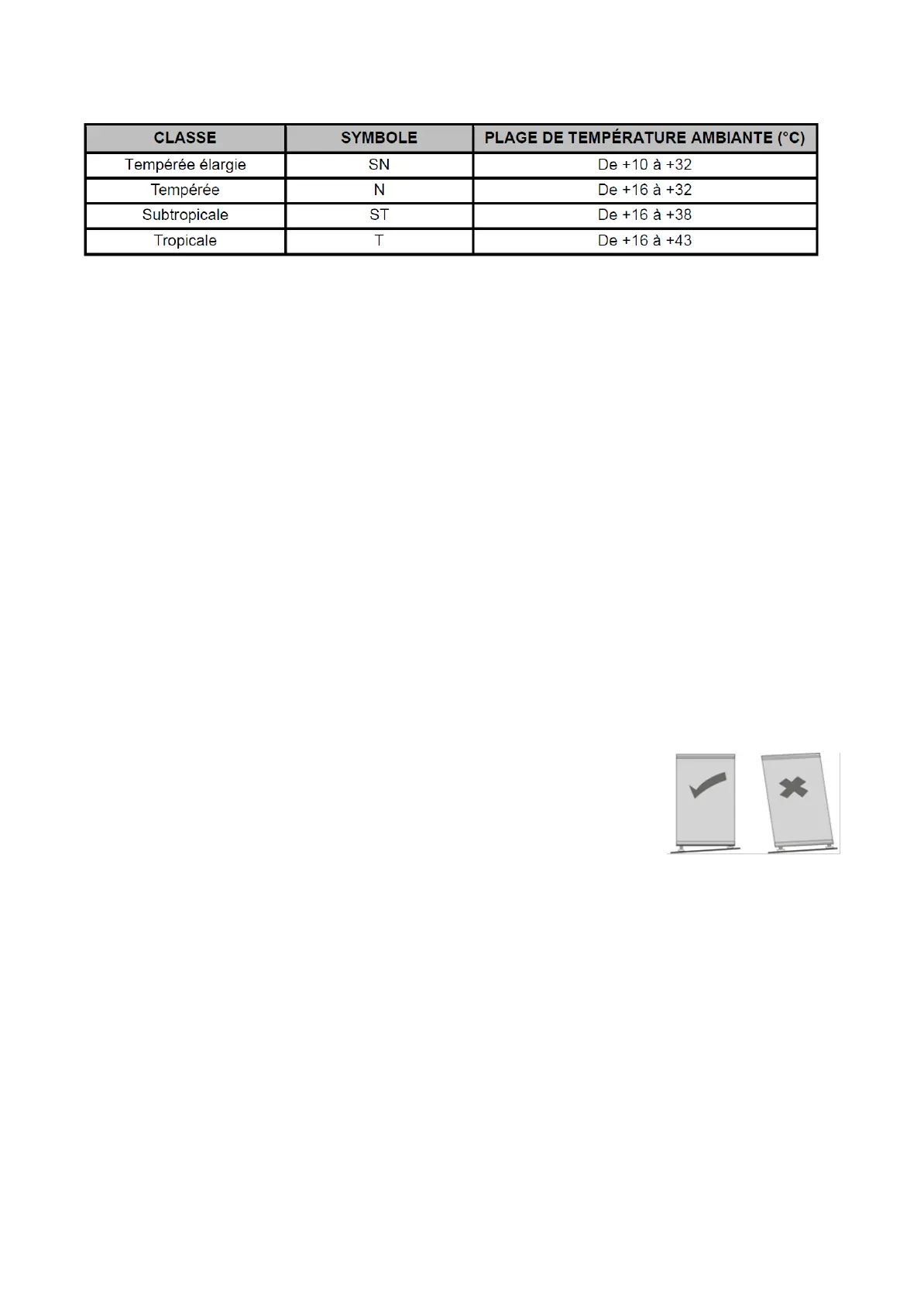 • ST : Cet appareil de réfrigération est destiné à être utilisé à des températures ambiantes comprises