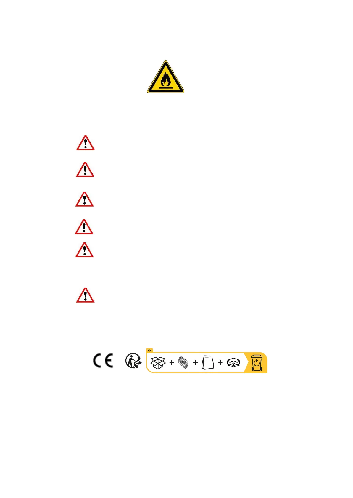 may not be placed in an area with sources of ignition