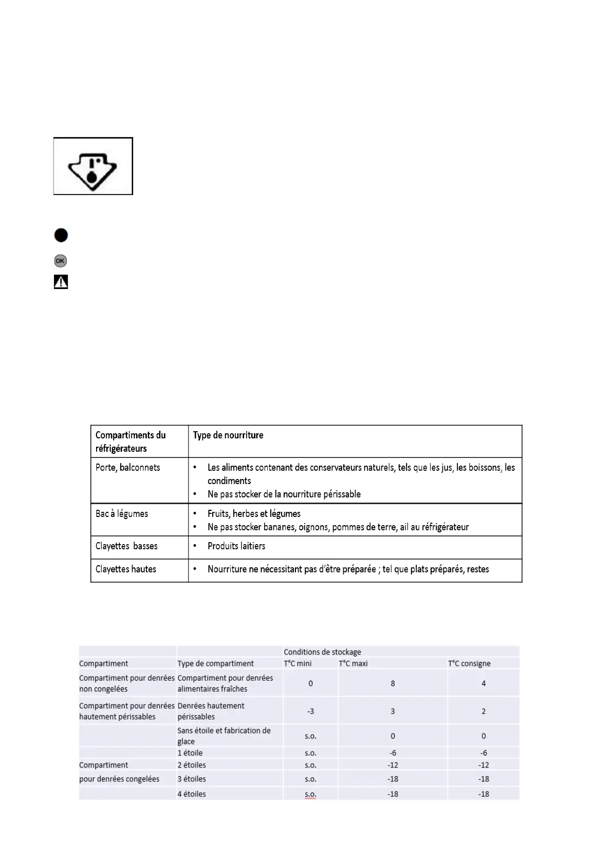 congélateur (4 étoiles) ; La meilleure durée de stockage peut réduire d'autres paramètres.