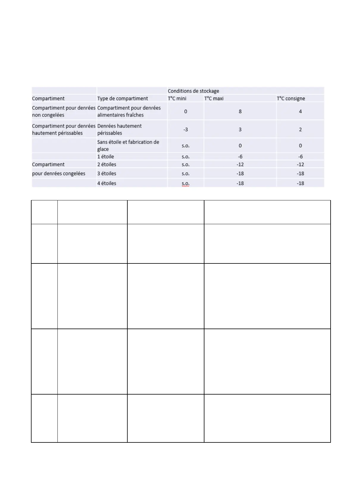 recommandé de régler les températures des compartiments comme ci-dessous :