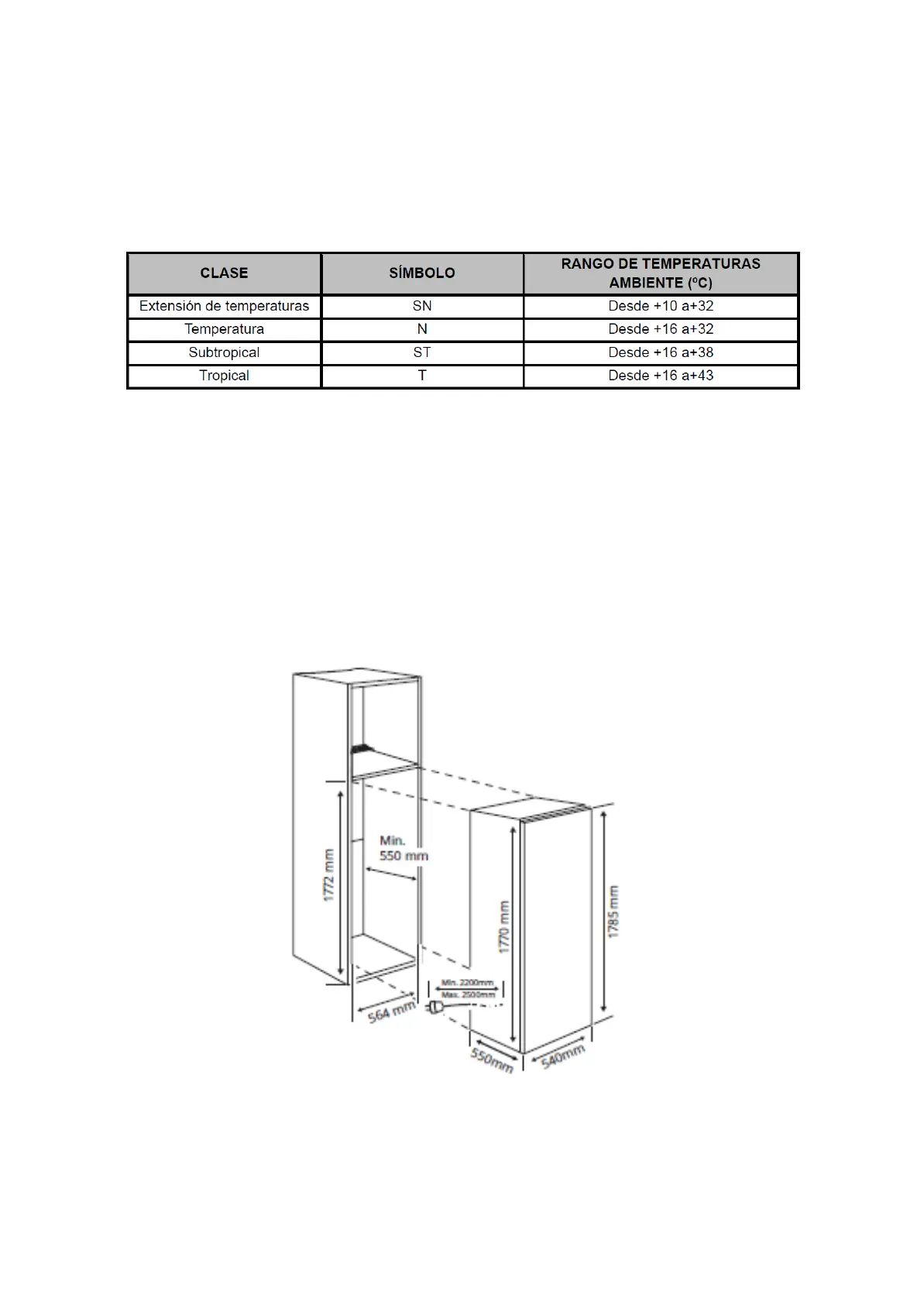 • ST : Este aparato de refrigeración está diseñado para usarse a temperaturas ambiente entre 16