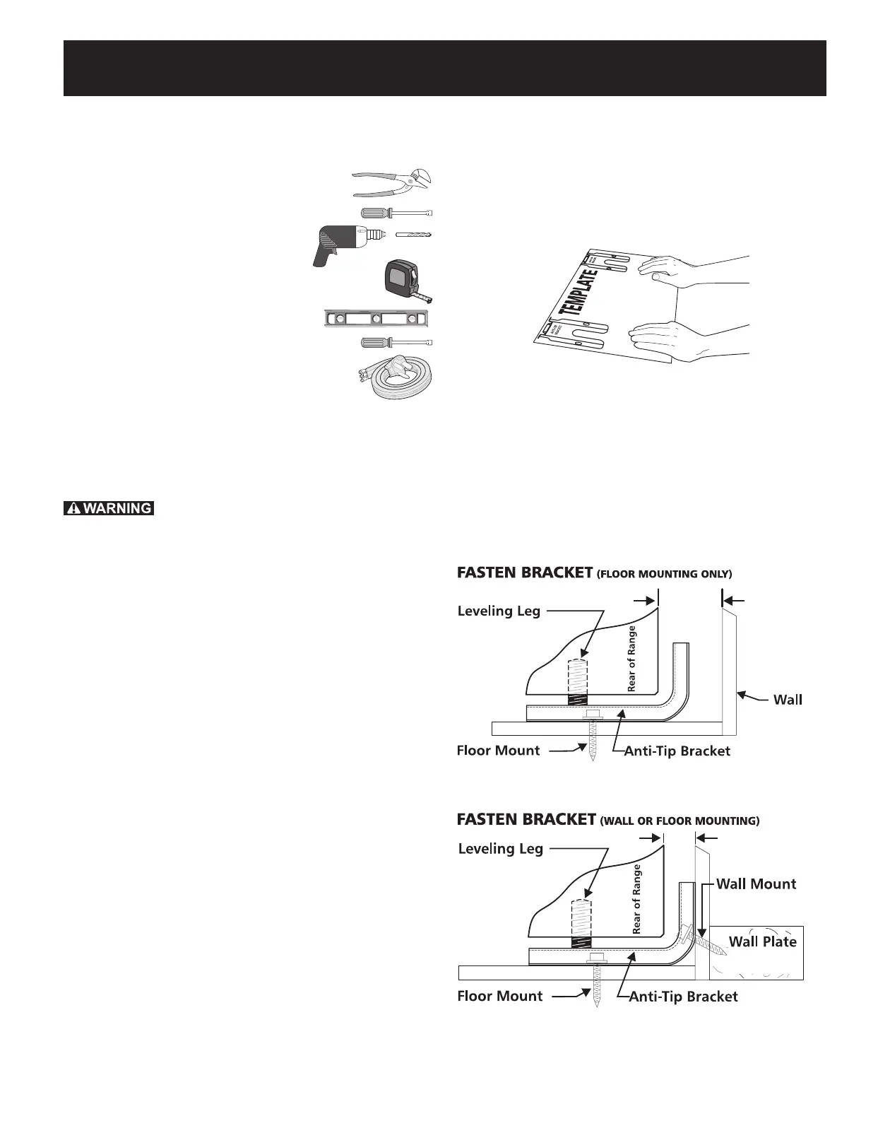 For leveling legs and Anti-Tip Bracket: