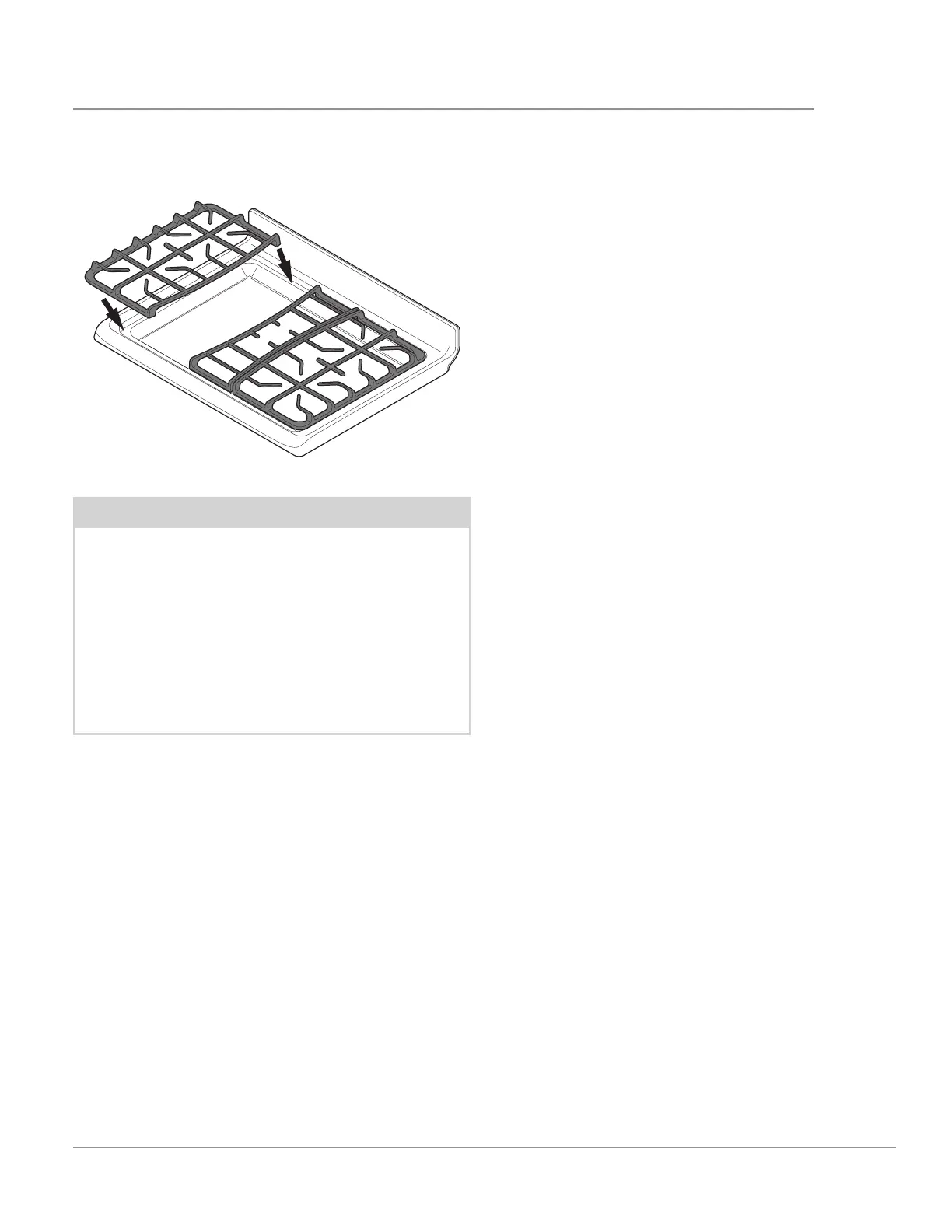 To install burner grates, place the grates fl at-side