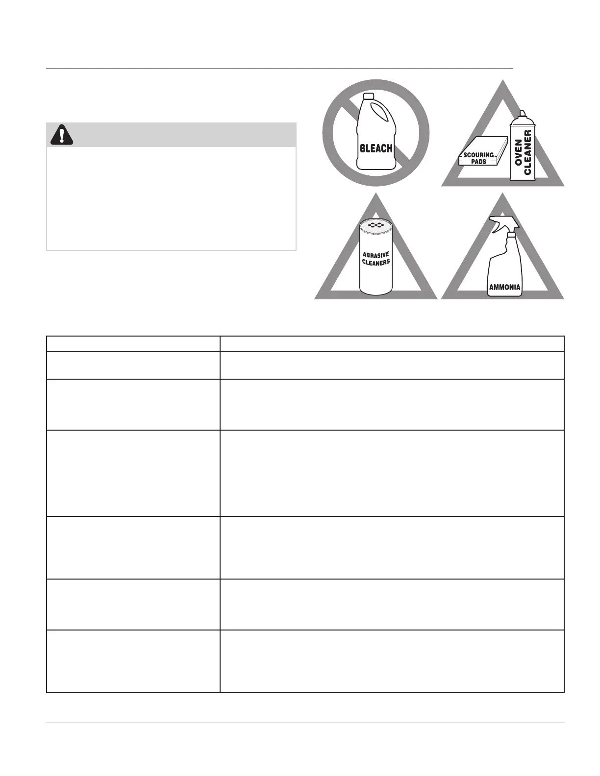 er, or cleaner containing abrasives, chlorides, chlorine, or ammonia.