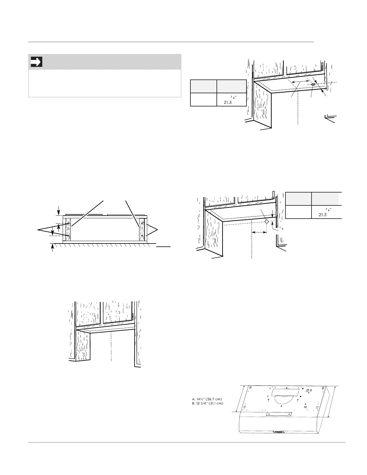 hole (B) through the cabinet at this point.
