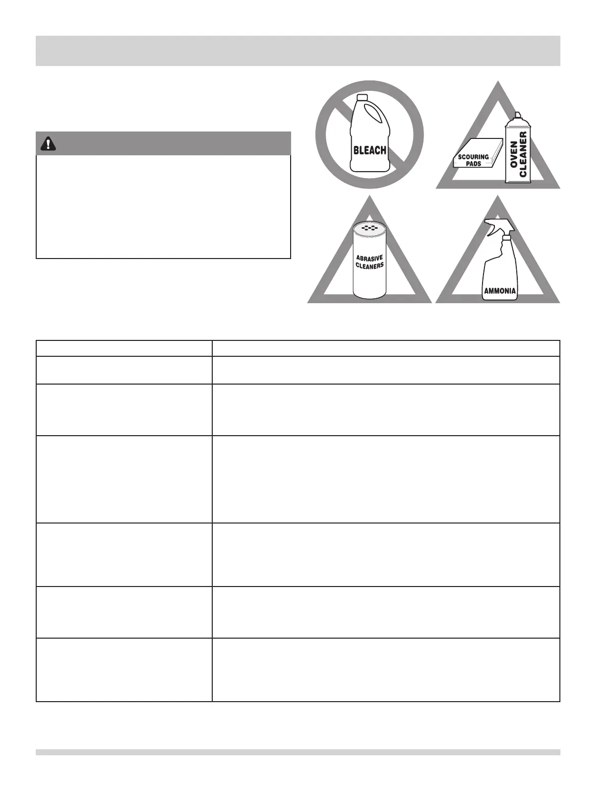 cleaner, or cleaner containing abrasives, chlorides, chlorine, or am-