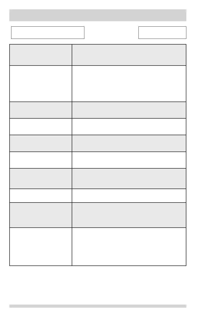 Refrigerator does not run. • Ensure the plug is tightly pushed into an electrical outlet.
