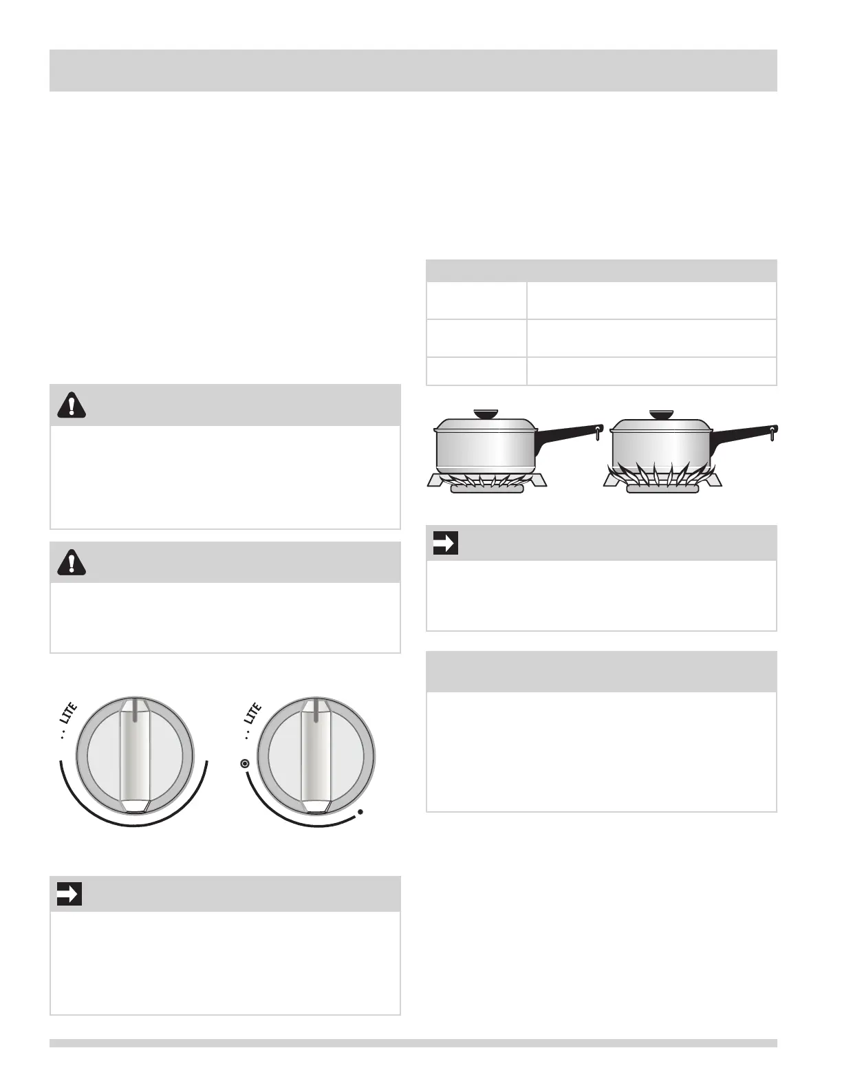 desired fl ame size. The control knobs do not have to