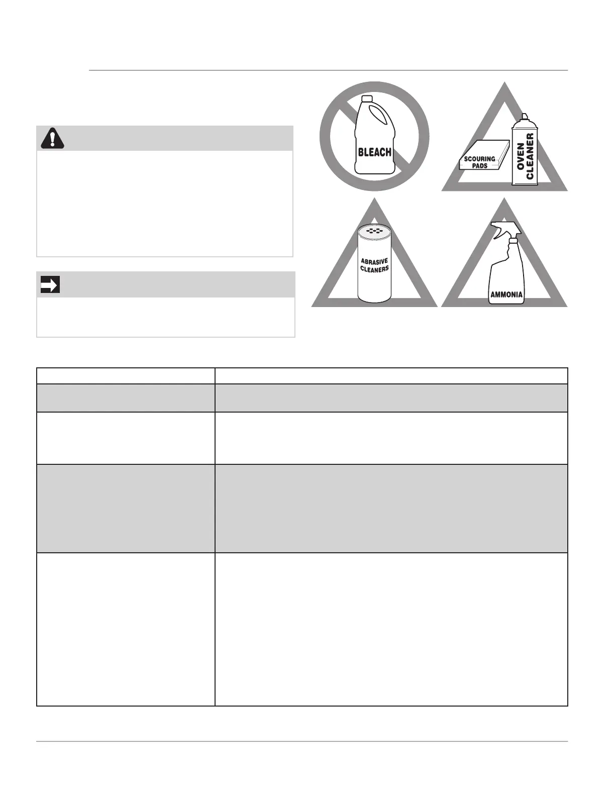 Control knobs Using a soft cloth, clean with mild dish detergent and water or a