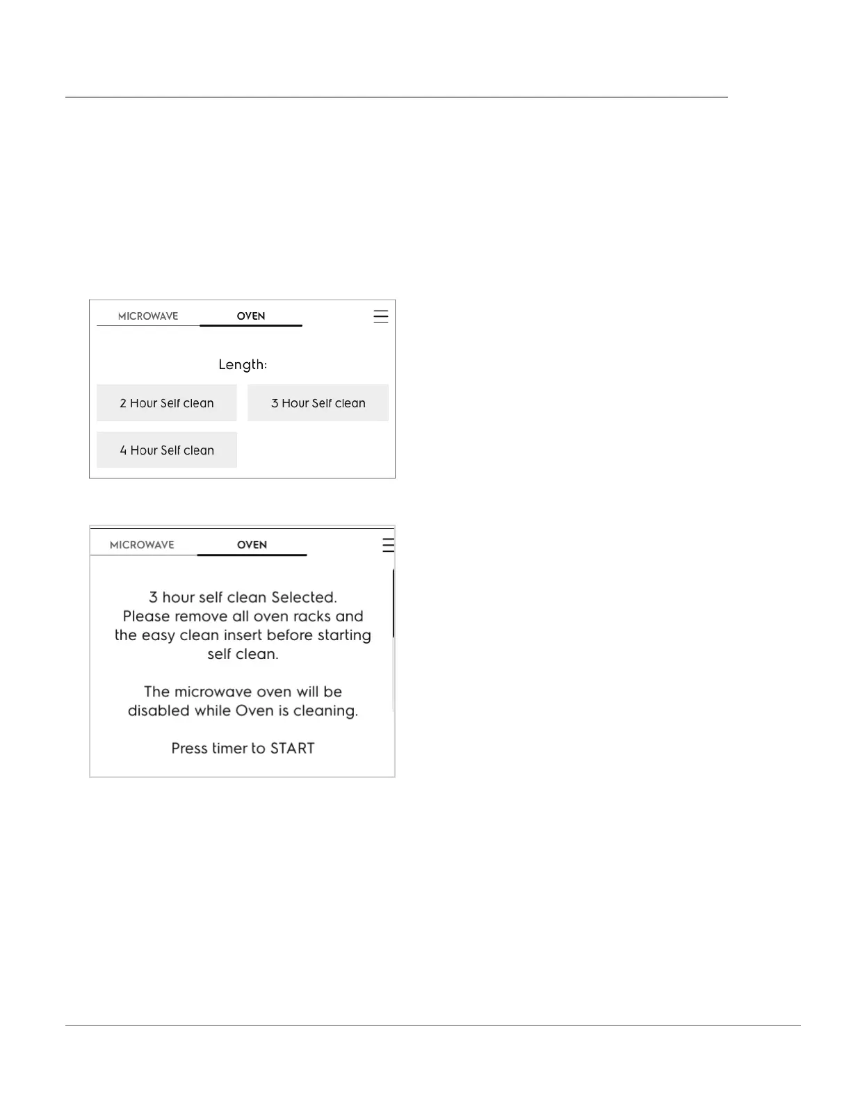 3. Touch Self Clean and select 2 hour, 3 hour, or