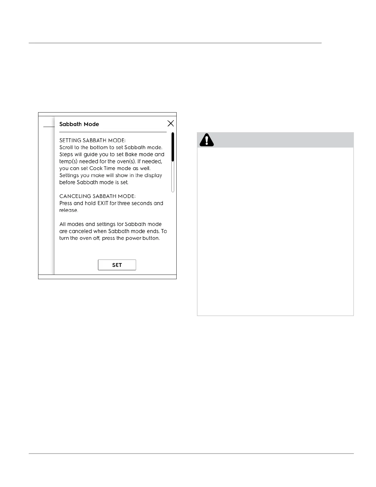 Sabbath Mode is set using the Menu Options.