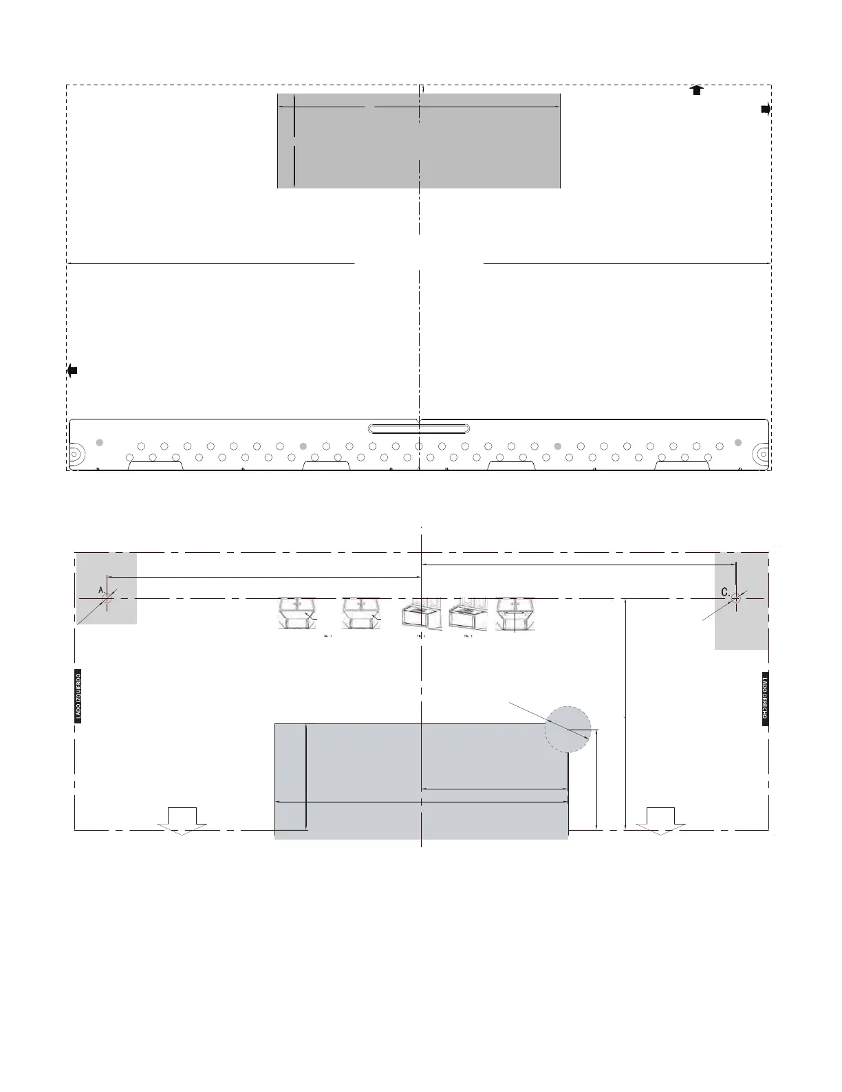 inferior del gabinete, para la ubicación de la