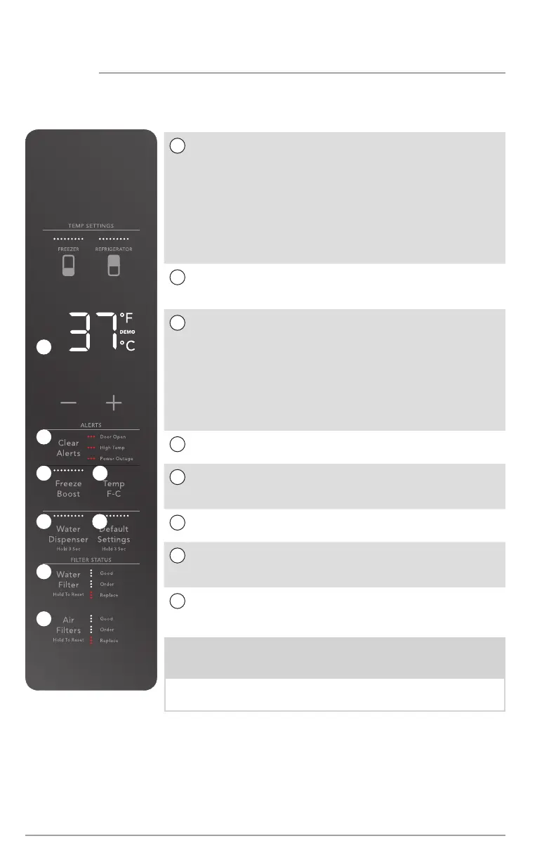 the FREEZER or REFRIGERATOR buttons at the top of the display. Press the + or −