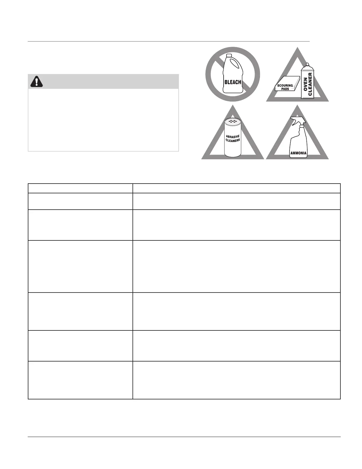 er, or cleaner containing abrasives, chlorides, chlorine, or ammonia.