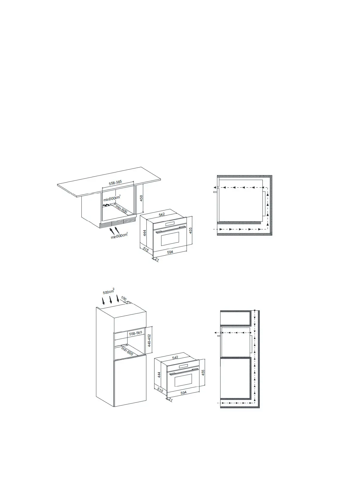 • For at sikre, at det indbyggede apparat fungerer korrekt, skal skabet, der indeholder
