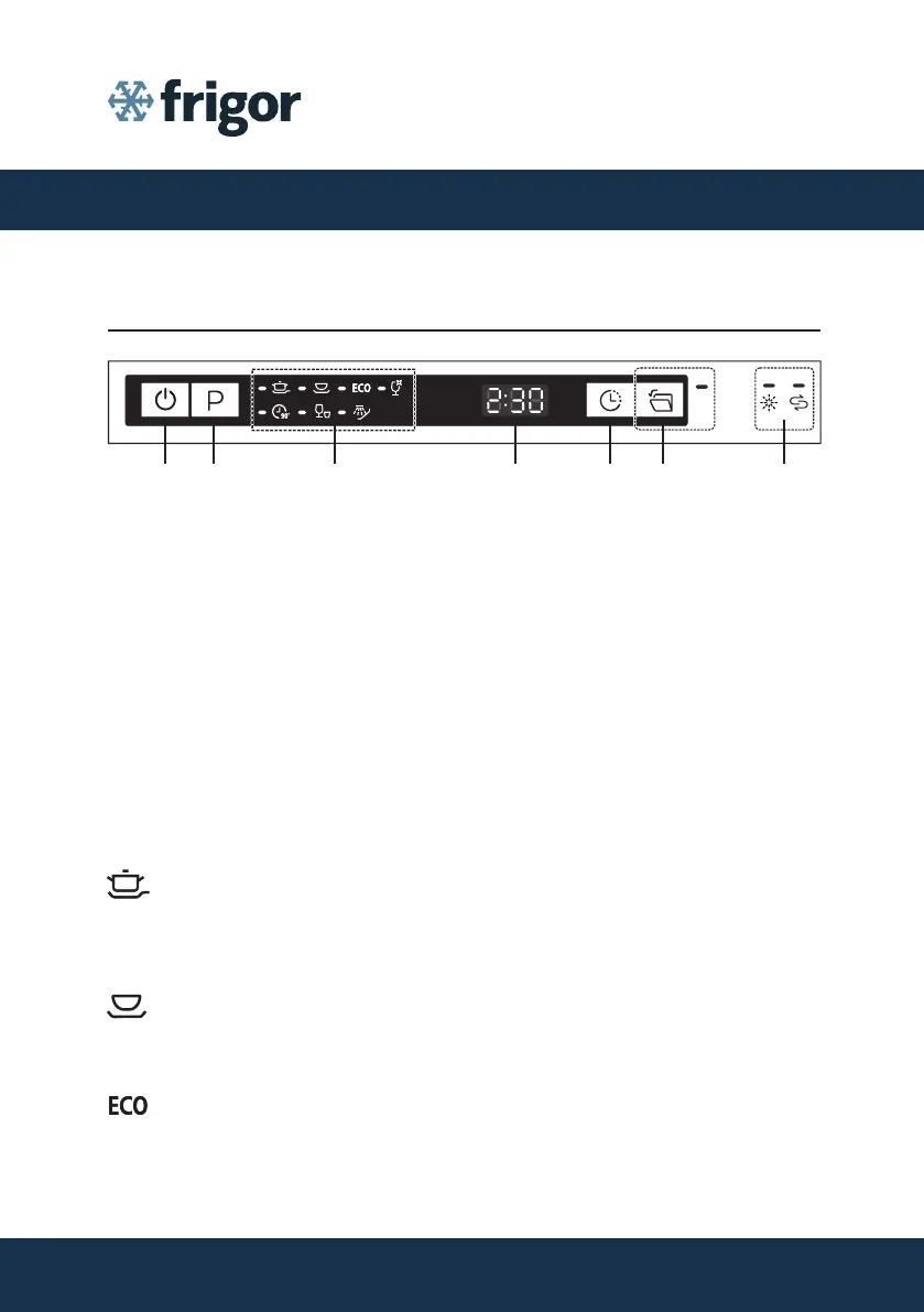 1. Tænd/sluk: Tryk på denne knap for at tænde for opvaskemaskinen.