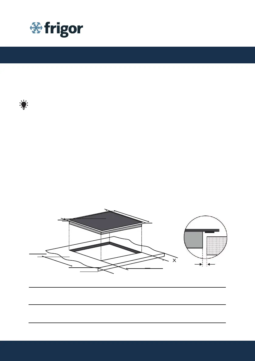 Når du installerer kogepladen, skal du skære et hul i bordpladen som vist på