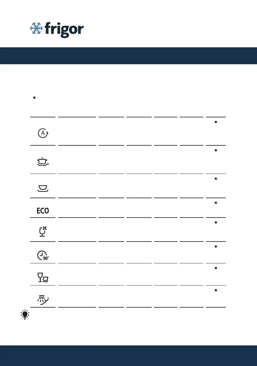 The table below how much detergent is needed. It also shows various infor-