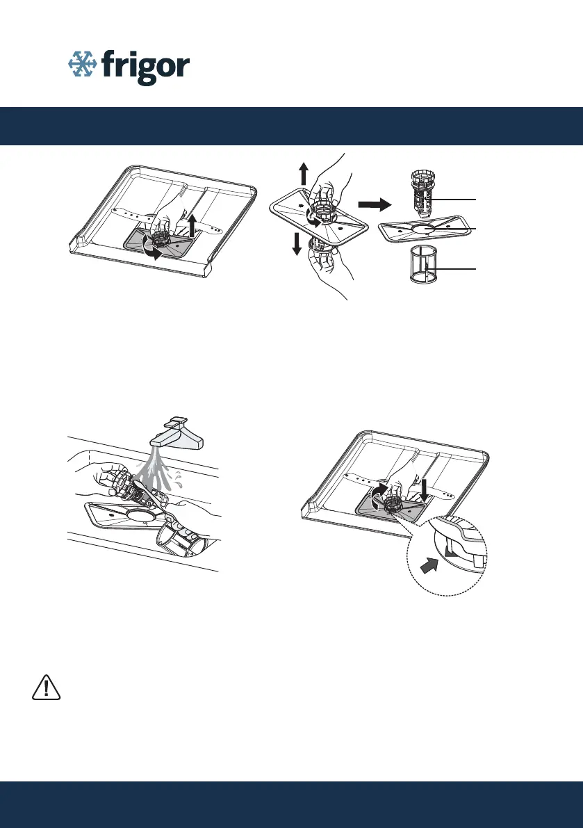 • Brug aldrig opvaskemaskinen uden lterenheden på plads. Forkert isætning af lteret kan