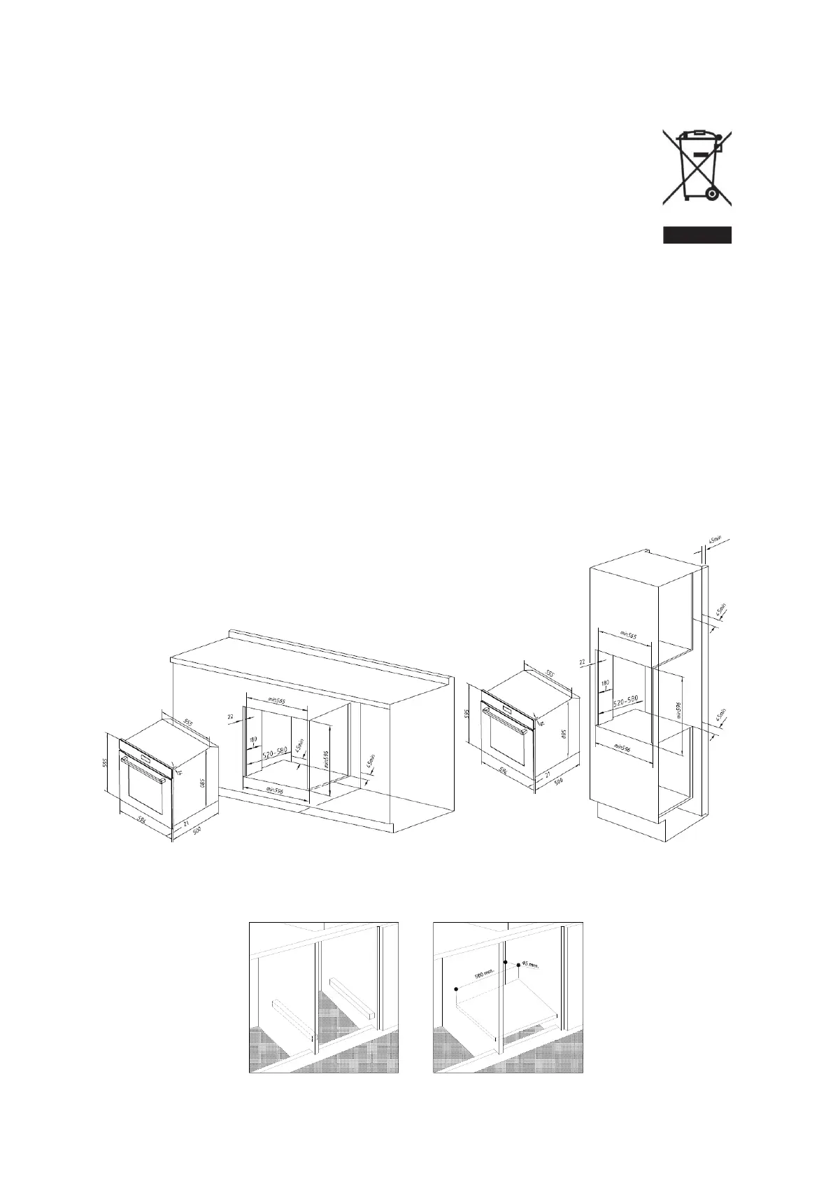 • For at sikre, at det indbyggede apparat fungerer korrekt, skal skabet, der indeholder