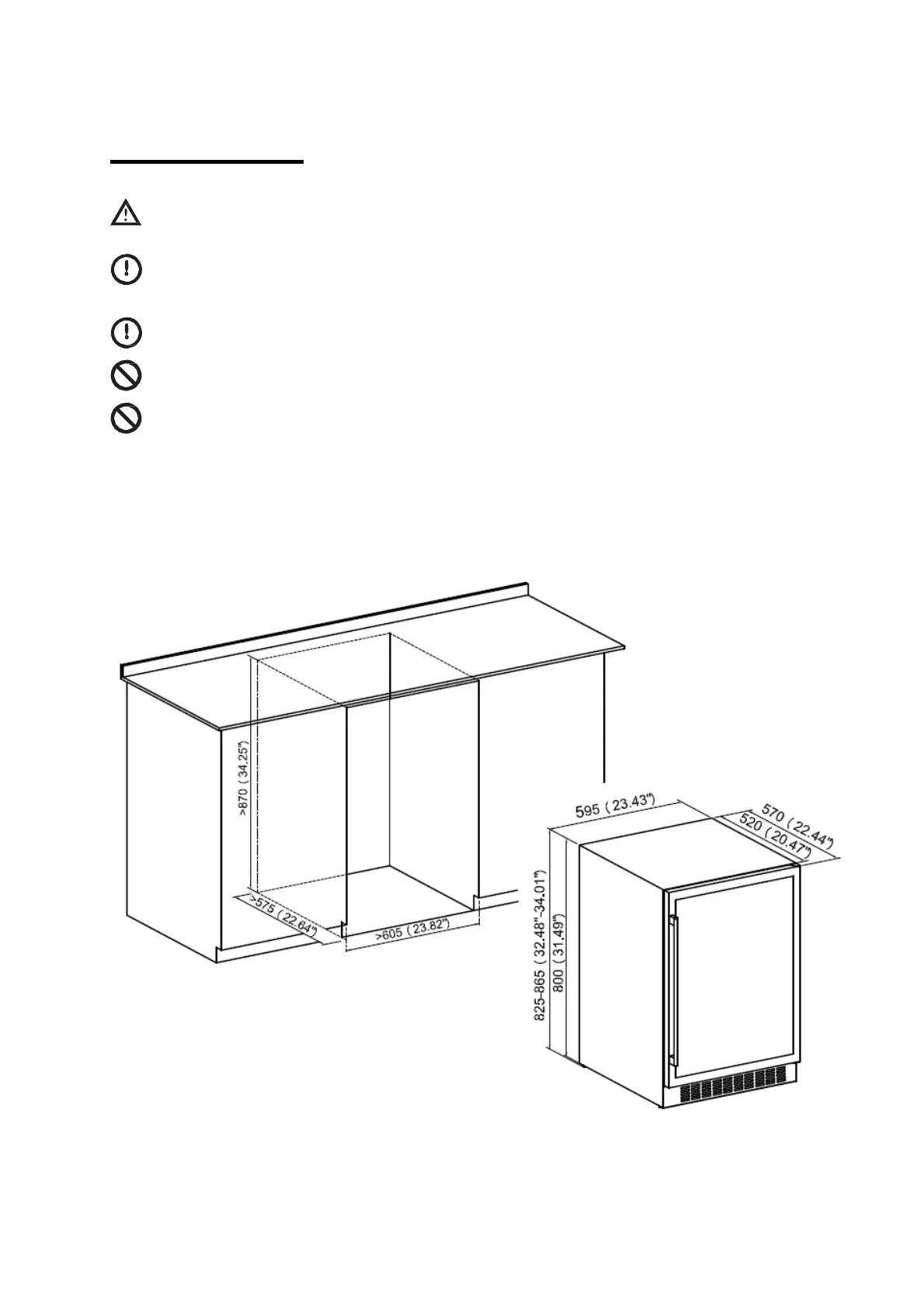 Do not lean over the appliance for more than 45˚ when moving it into its position.