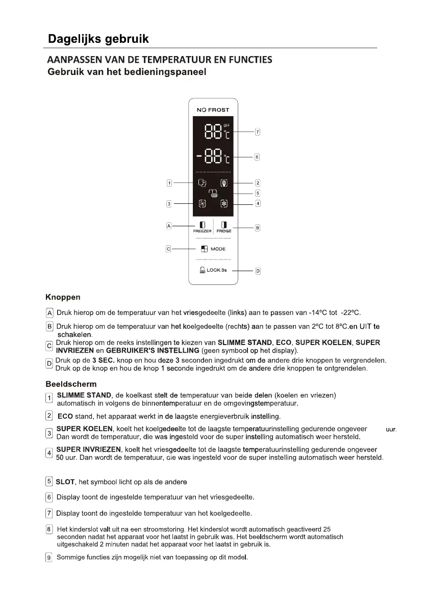 Tip: Stel deze stand 24 uur tevoren in wanneer u inplant een grote hoeveelheid in het vriesgedeelte te plaatsen.